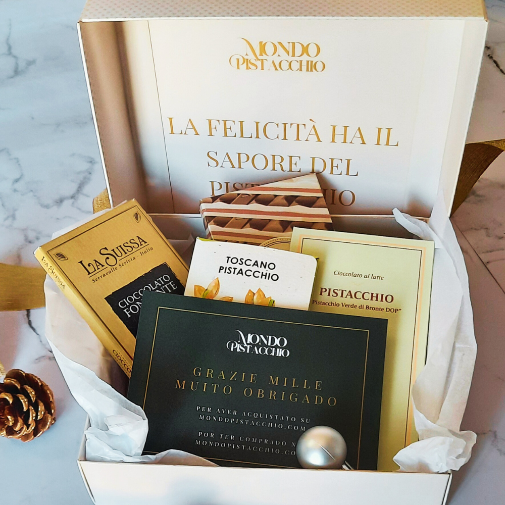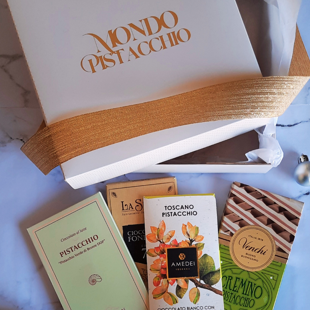 ”Con tavolette realizzate con cacao di prima qualità e i pistacchi più pregiati, le nostre confezioni regalo offrono un’esperienza di gusto ineguagliabile. Un dono che conquista sempre.