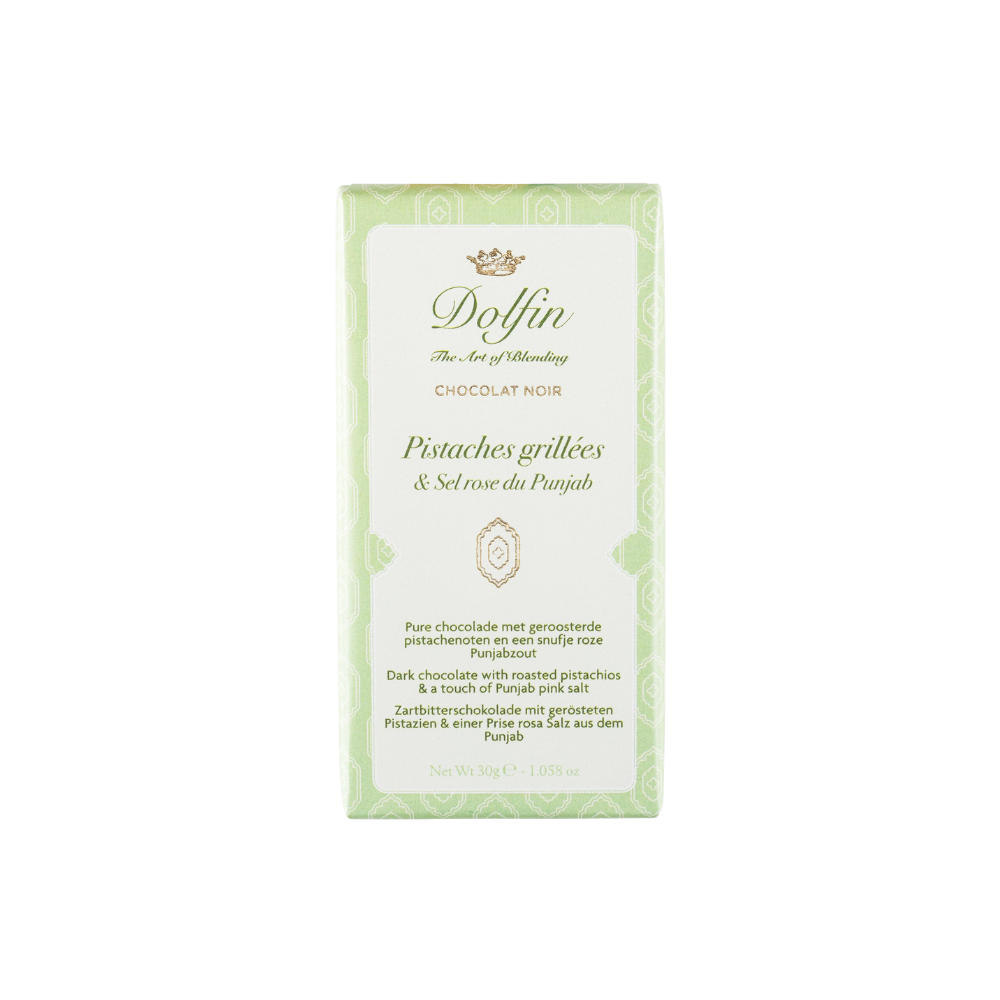 DOLFIN Tavoletta Fondente con Pistacchi Tostati e Sale Rosa del Punjab